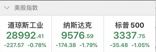 北京时间22日凌晨,美股三大股指全线收跌,科技股领跌。截至收盘,道指跌0.78%、纳指跌1.79%、标普500跌1.05%。