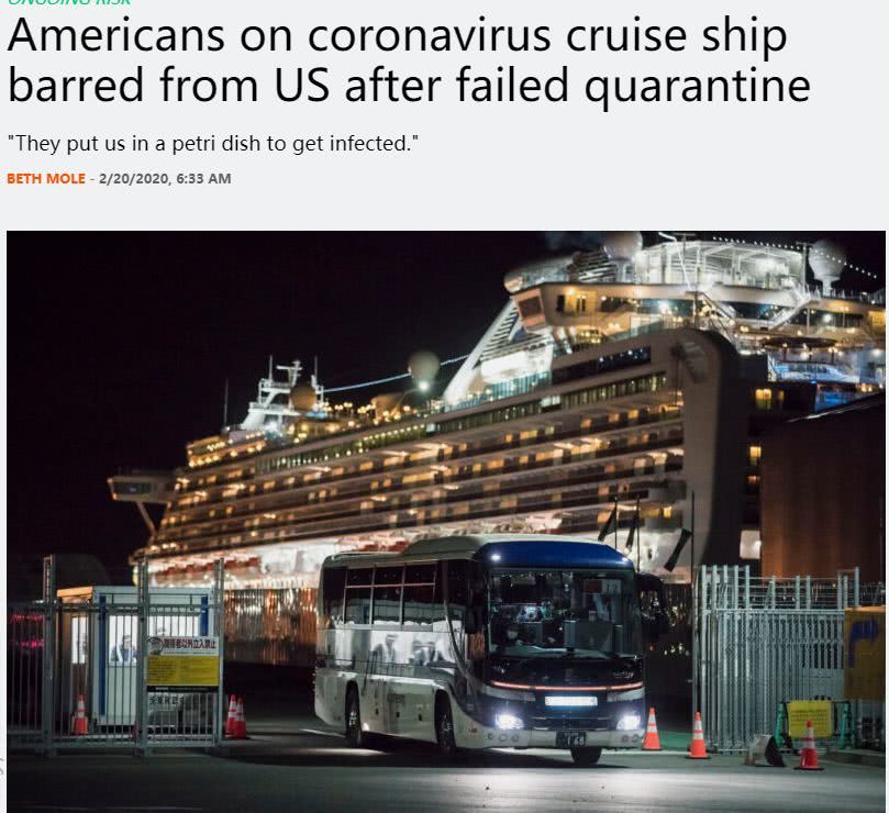 2月17日,美国开始从日本横滨港的“钻石公主号”上撤侨。可撤离的300多名美国公民中有14人在新冠病毒检测中呈阳性。