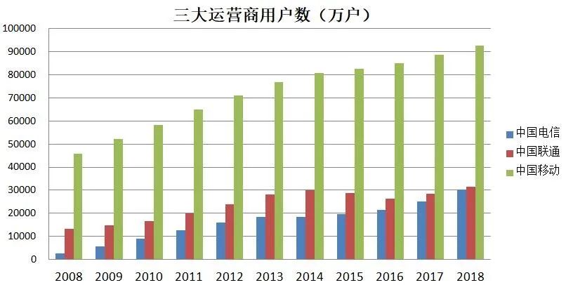 运营商整体业务在2014-2018年从12544亿元增长至14048亿元,复合年均增长率2.9%。
