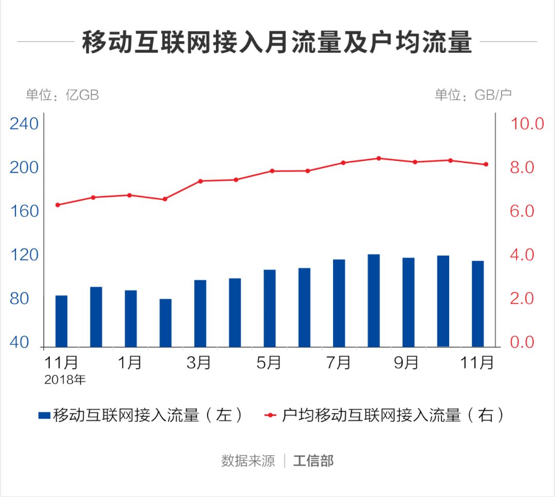 在“流量红利”和“提速降费”双重加持下,4G用户DOU(平均每个用户每月使用的上网流量)提高了7倍以上。
