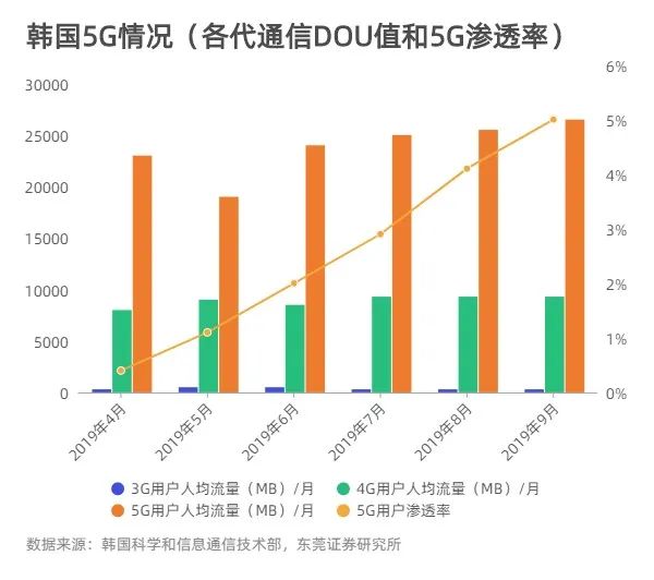 “自2018年12月份发放牌照,2019年4月份提供服务、开始向用户销售,目前韩国5G用户超过300万,用户增长超预期,从每个用户使用的数据业务量来看基本上能够达到4G的2到3倍。”王志勤说。