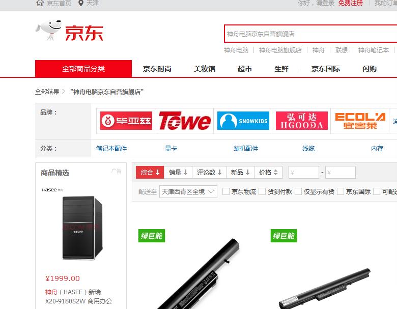 截至《炣燃科技》发稿时,在京东商城上搜索“神舟电脑京东自营旗舰店”,已经不显示任何相关内容。此外,“神舟官方旗舰店”显示正常。