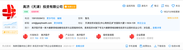 吊诡的是,高济医疗的运营主体——高济(天津)投资有限公司却显示经营异常。