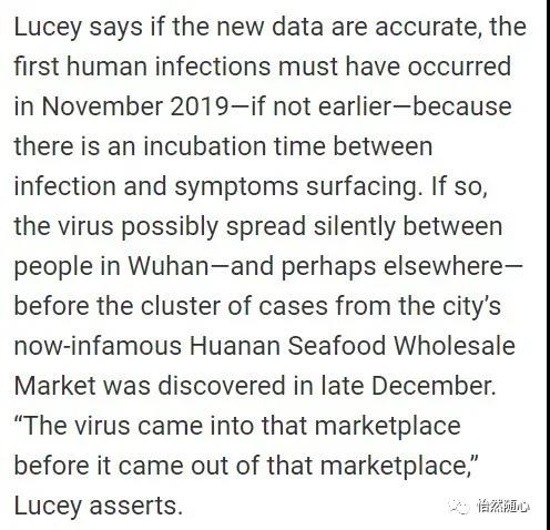 注意:这位专家说的是武汉的第一位病人感染的时间,和美国一点关系都没有。