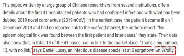 里面提到乔治城大学 (Georgetown University) 的一个流行病专家Daniel Lucey接受采访: