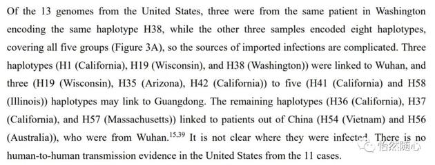 最大的问题是,这13个基因组都来自于有武汉旅行史或者接触过有武汉旅行史的人。这些难道不都属于从武汉输入美国的?其中就包括那位从武汉探亲回来的美国一号病人携带的最古老的单倍型H38。换句话说,号称”爷爷“辈的新冠病毒单倍型H38就是武汉的,而不能算是美国的。