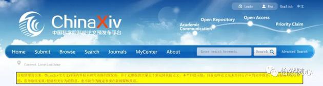 图1:中国科学院科技论文预发布平台 (www.chinaxiv.org) 的网站主页截图。
