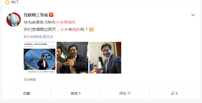 距“小米消失”的最后期限还有两天,不少IT用户开始在社交平台发起话题,并以此调侃曾放“豪言”的余承东。