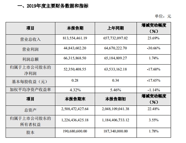 根据业绩快报,资本观察网注意到,2019年,庄园牧场实现营收增长23.69 %,净利润较上年同期却下降17.60%。