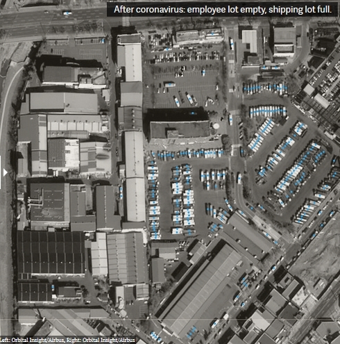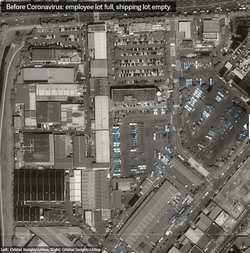 现在,Orbital Insight的分析人员正在寻找证据,来证明眼下的全球性流行病正在如何颠覆世界各地的商品流通和人员流动。