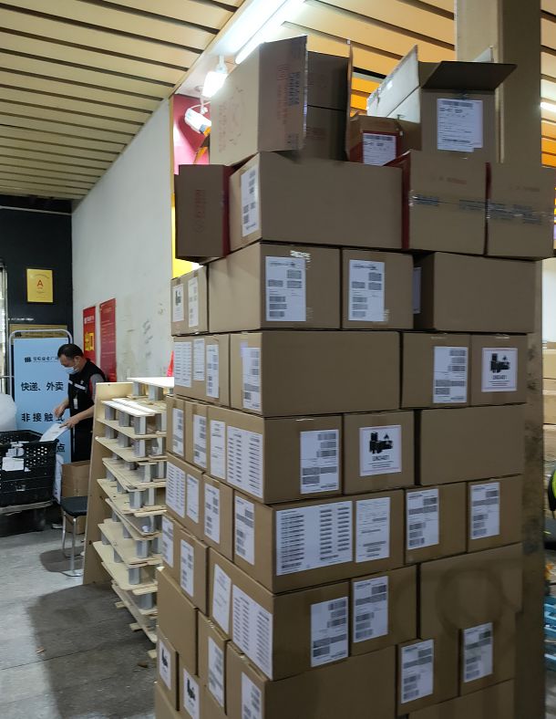3月16日晚7时30分许,暮色已降临,疫情下的“中国电子第一街”华强北几大主要手机通讯市场远望数码城、曼哈数码广场、飞扬通讯市场早已打烊,但仅供商场商家和内部工作人员通行的市场后门却人流如织,川流不息的拖货车、高高的货物,以及周边密集分布的快递网点频繁传出的快速打包声,共同传递出一个信号:忙!