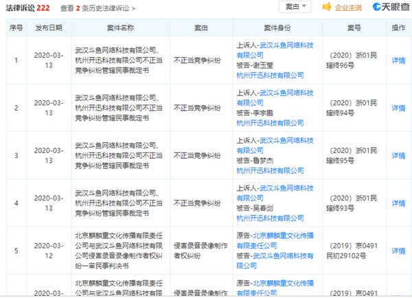 此外,天眼查还显示,有关斗鱼的法律诉讼多达222条,炣燃科技注意到,单2020年以来就有22条。