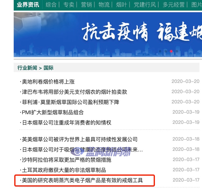 3月21日消息,近期有一份显示来自福建烟草专卖局官网转载「美国的研究表明蒸汽类电子烟产品是有效的戒烟工具」一文截图在朋友圈和电子烟行业群流传,有人质疑是假消息,也有人坚持认为是真消息。