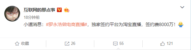 3月23日消息,有网友爆料称,罗永浩独家签约平台为淘宝直播,签约费8000万元。