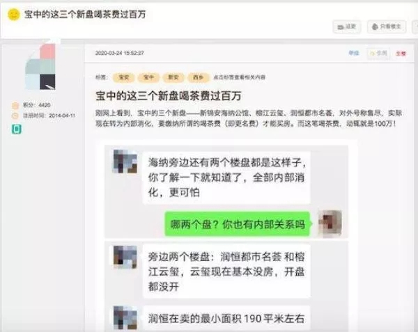 日前,有网友在社交平台上爆料,深圳某区域三个新盘项目,对外号称售罄,实际现在转为内部消化,要缴纳所谓的喝茶费(即更名费)才能买房。而这笔喝茶费,最高竟然高达100万。