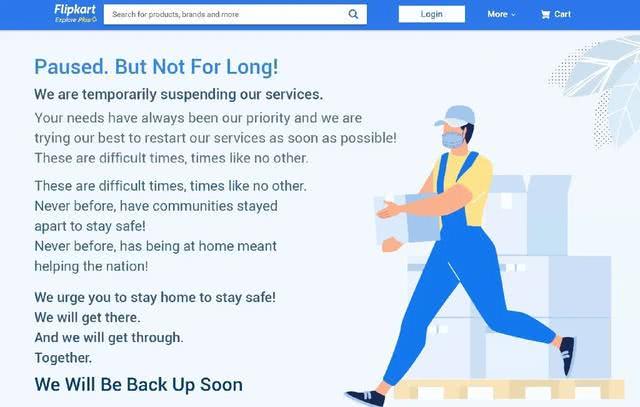 居家隔离的人们,纷纷涌入电商和生鲜平台网购。封锁的第一天,印度第一大电商平台Flipkart被挤爆。其官网主页显示,目前暂不提供服务,将尽快恢复,并劝告顾客待在家中。另一家电商巨头亚马逊印度则宣布,暂停非必需货物的配送,以保证生活必需用品的优先配送。一名志象网读者在亚马逊上尝试订购猫粮,发现配送时间已经排到了4月中旬。