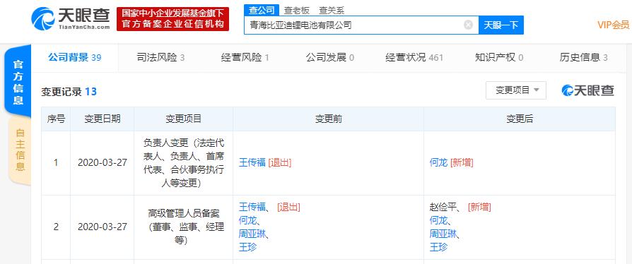 3月25日,王传福卸任西安比亚迪实业有限公司的法定代表人、董事长职务,其兄长王传方接任。