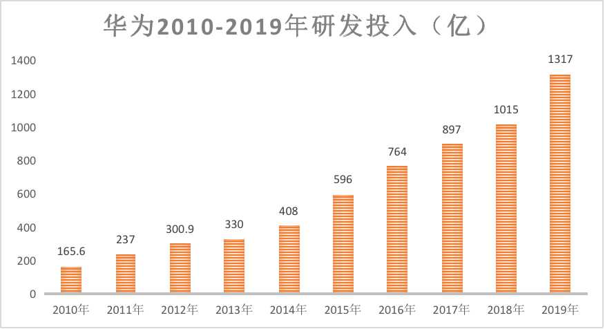 (图:华为近10年研发投入 网易态℃栏目制作)