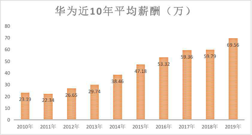 (图:华为近10年平均薪酬 网易态℃栏目制作)