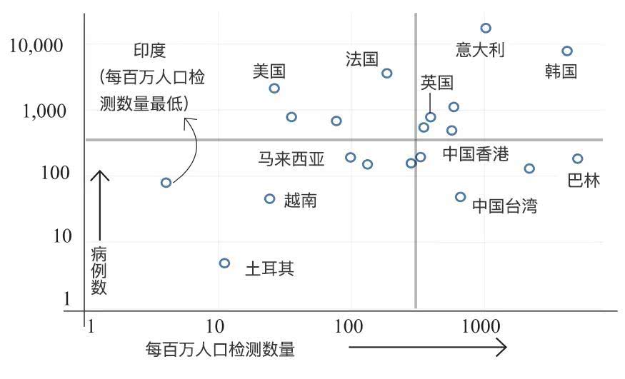 (每百万人口的检测人数。可以看出,韩国仍然一个“优等生”,而印度依然垫底。 来源:《印度教徒报》官网)