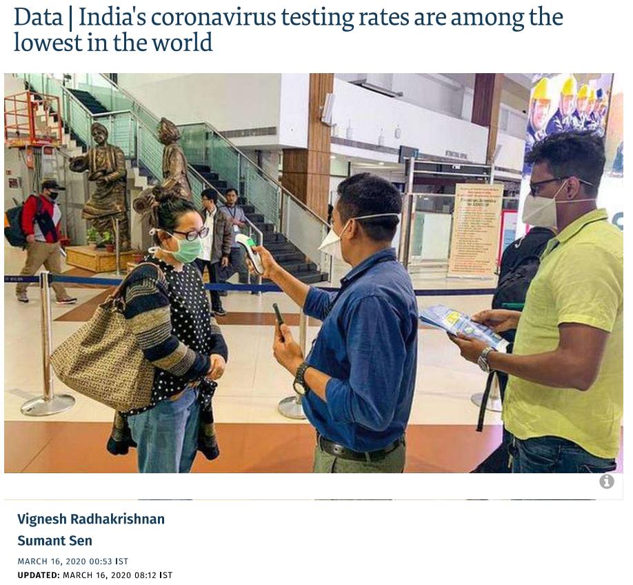 (报道称,印度新冠病毒的单位人口检测率全球最低 来源:《印度教徒报》官网)