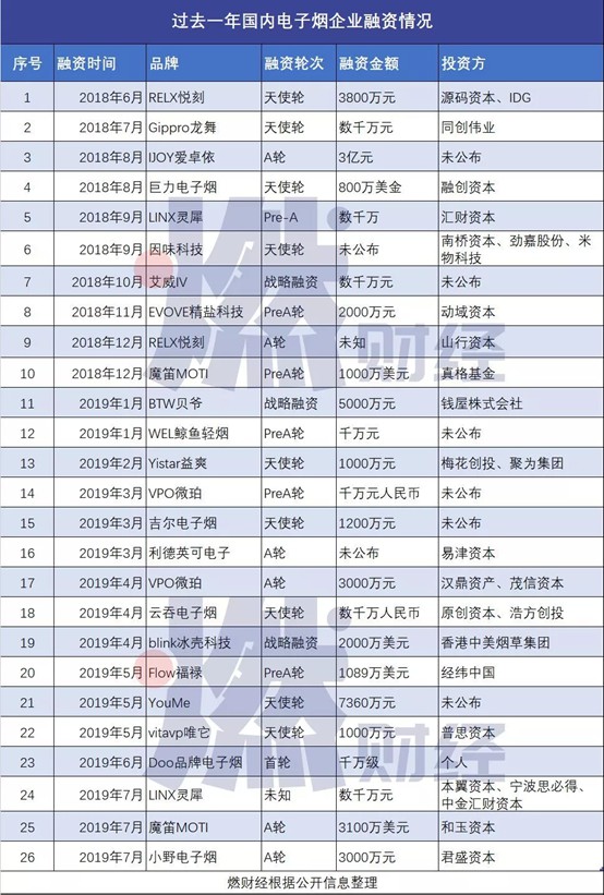 目前,在科技领域,电子烟被视为下一个值得追逐的大风口。从资本市场来看,2018年6月,悦刻拿着IDG和源码资本的3800万元投资,打响了电子烟大战的第一枪。一年时间过去了,资本对电子烟赛道的热情丝毫未减。