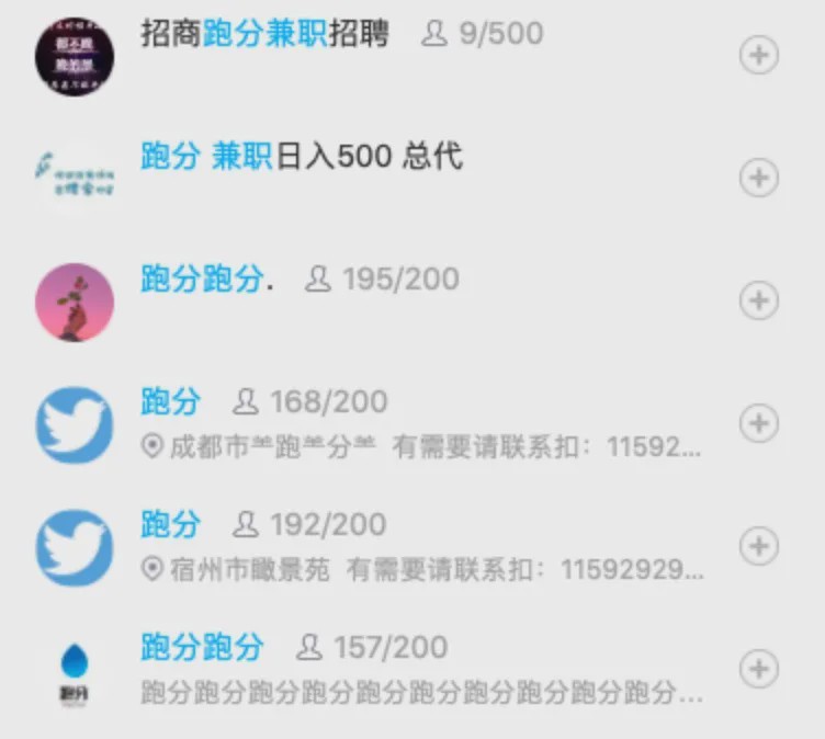 目前,在QQ群搜索“跑分”等关键字,会发现绝大部分群已经被封。