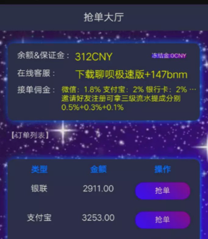 平台接到一个赌博用户往赌博网站充值1万的订单后,会马上在网站上发布订单,让二维码用户抢单。