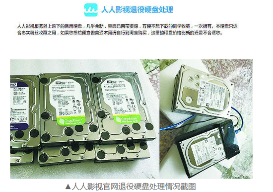 日前,人人影视官网一条“退役硬盘处理”且价格不菲的消息,引起不少影迷、剧迷的关注。北京商报记者了解到,此次人人影视处理的硬盘里自带美剧、日剧、韩剧、电影、纪录片、公开课等相关资源,并根据硬盘容量的大小明码标价,对用户进行出售。常年处于版权争议漩涡的人人影视,早已不是第一次做出“处理硬盘”的决定,这些搭载着大量影视资源、价格动辄上万元的硬盘背后,一个缺钱且在侵权边缘疯狂试探的形象,已经逐渐清晰。