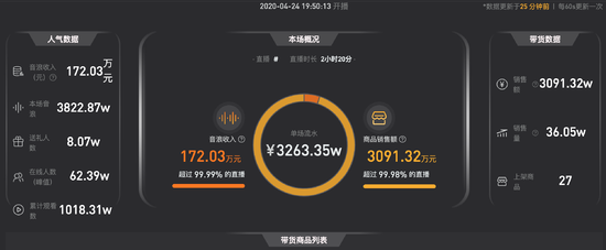 本次直播,罗永浩直播间累计观看1018万人次,销售额3091万,而且直播间打商额度创新高,打赏3821万音浪,高于首次的3564万音浪,对此罗永浩表示,“恢复了第一第二场的雄风。”
