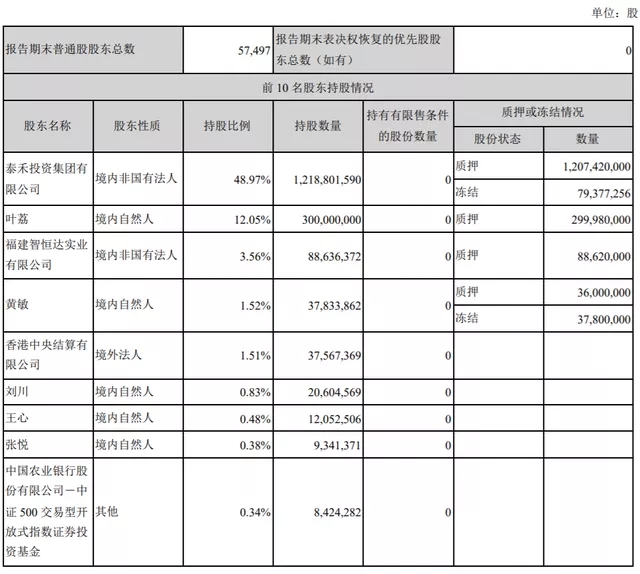 在股权质押上,黄其森几乎将泰禾投资的股权全数质押,目前泰禾投资持有泰禾集团48.97%的股权。