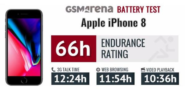 相较之下,iPhone 8的这4个成绩分别为12.5个小时、近12小时、10.5个小时和66小时。