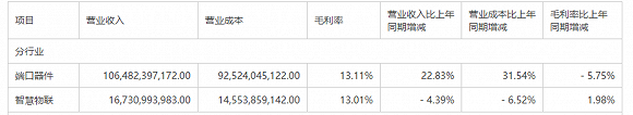 可以明显看到,受累于面板价格下行,产品销量增长带来的收入增速小于成本增速,导致端口器件业务的毛利率大幅下滑5.75个百分点。