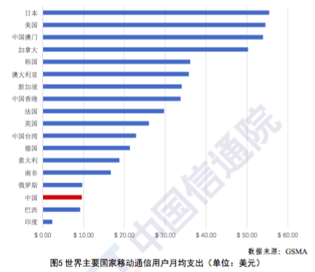 报告指出,2019年第四季度,我国移动通信资费在全球处于偏低水平, 移动通信用户月均支出在全部 239 个国家和地区中按价格由低至高排名第79位3,低于全球13.56 美元的平均水平,远低于日本、美国、加拿大、韩国等发达国家。
