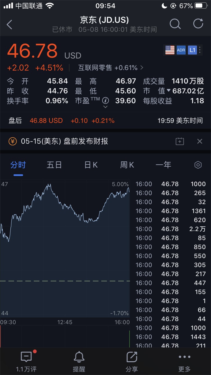 IT之家了解,京东于2014年5月再美国纳斯达克上市,距今已有6年之久,截至5月9日美股收盘,集团总市值达到687亿美元。该公司的业务较为多元化,涉及零售、金融、物流、健康、人工智能等领域。
