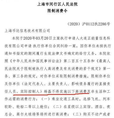 据哈啰出行介绍,上海币达公司是一家有限责任公司,杨磊为该公司的自然人股东,已经完成出资责任,但不参与该公司的经营管理,不应属于被限制高消费的范围。
