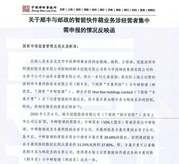 除此之外,因与中邮智递科技有限公司的股权重组一事,丰巢公司还受到了北京三位律师的联名举报。