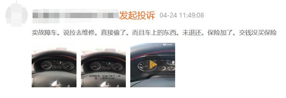比如下面这位弹个车投诉用户就表示,弹个车不仅卖故障车,而且还借故障维修的幌子把车偷偷开走,连车上的东西都没有退还。
