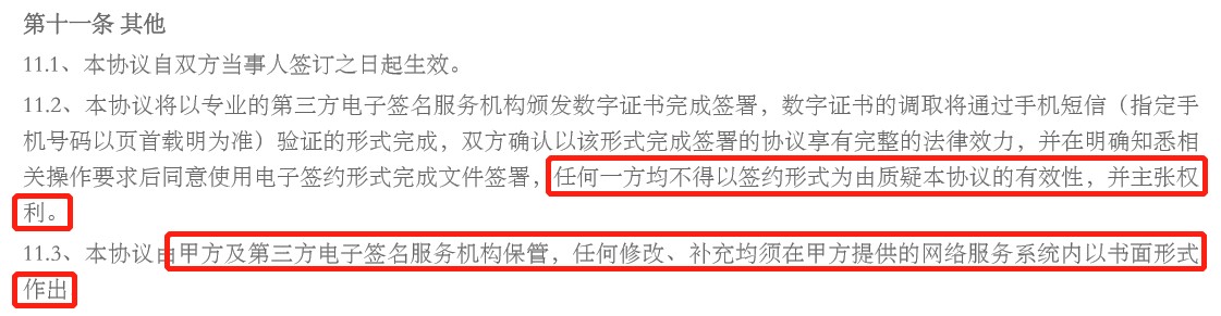 2、本协议由甲方及第三方电子签名服务机构保管,任何修改、补充均须在甲方提供的网络服务系统内以书面形式作出。