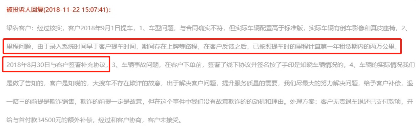 但是对于这样的回复,梁先生表示8000公里的路程差非常不现实:“里程问题的解释是因为上牌路程导致,8000公里的误差!我在重庆买的,在重庆上的牌!就是从中国一头跑到另外一头也用不了8000公里。他们这种解释纯粹是欺负人。”梁先生和大叔说道。