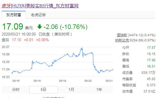 21日,虎牙最高价为17.98美元,最低达16.51美元,成交量838.59万手,总市值为37.51亿美元。