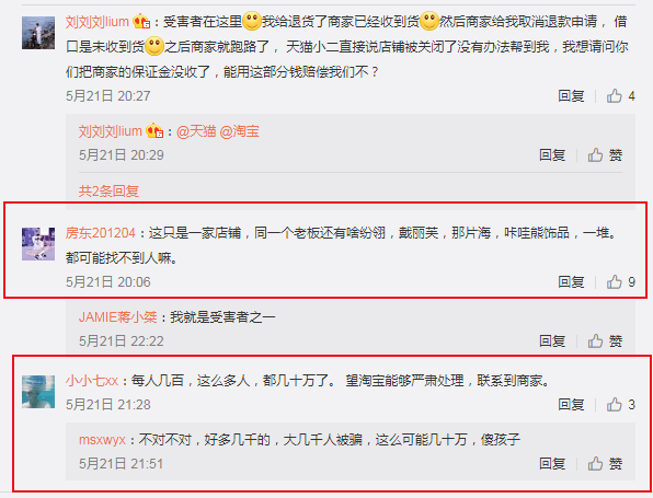 该用户认为消费者在淘宝平台受到欺骗,理应收到补偿,店家跑了,不应该平台来负责吗?不然我又为什么在你们平台购买产品?“平台监管失误,导致入驻无良商家,并且还不维护消费者,如此没有保障的平台谁还敢去呢?”
