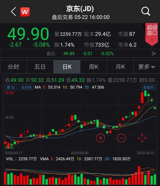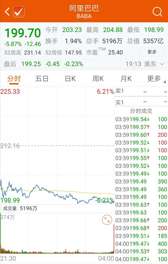 但两家公司在今年一季度的净利润表现均不太理想,财报发布后,两家巨头的股价表现也出现分化,据纳斯达克官网,阿里巴巴昨夜收跌5.87%,目前市值5357亿美金。一天市值蒸发335亿美元,折合人民币2400亿。