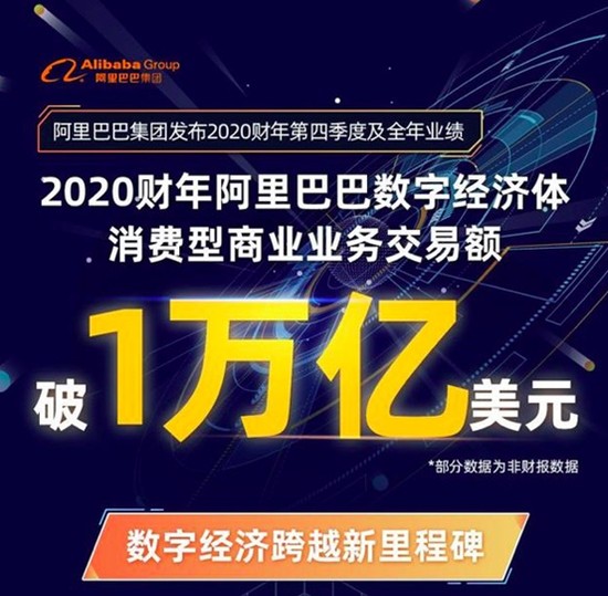 2020财年,阿里巴巴消费型商业业务交易额(GMV)突破7.053万亿元人民币。这意味着,阿里巴巴成为了世界第一个平台销售突破1万亿美元的公司,无论是对于阿里巴巴和还是对于中国电商界,这都是里程碑式的事件。