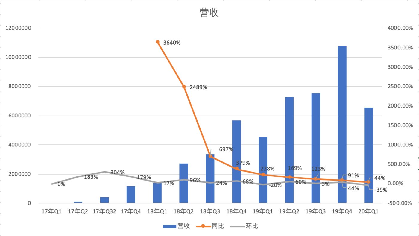 拼多多2020年第一季度实现营收65.41亿元,同比增长44%;归属于普通股股东的净亏损为41.2亿元,亏损同比扩大119%;非通用会计准则下,拼多多2020年第一季度净亏损依然高达31.70亿元。