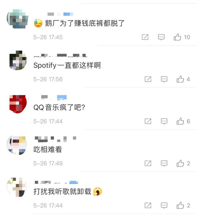 但这样的回应依然遭到网友的批评。有网友依旧不满,认为QQ音乐的这波“骚操作”实在影响听歌心情、吃相难看。