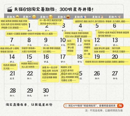 其中,李易峰、宋威龙、欧阳娜娜等明星都会连开3场直播,而朱一龙、欧阳娜娜、华晨宇等明星还将拥有自己的专属页面。