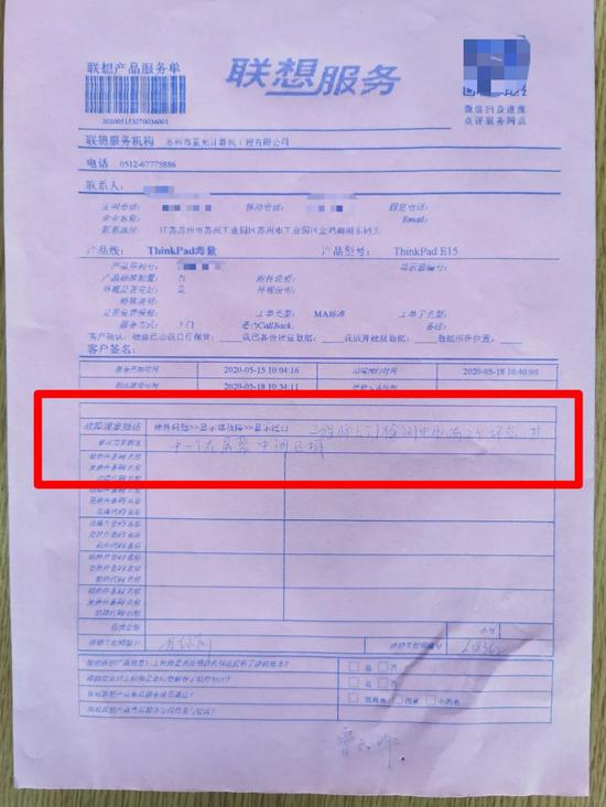 ▲鲁先生提供的售后检测单据