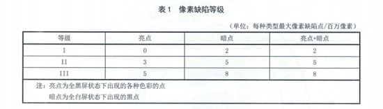 ▲《计算机用液晶显示器通用规范》中关于像素缺陷的描述