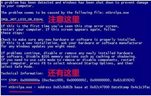 其实蓝屏到底是怎么引起的,电脑都已经告诉我们了,最后出错的蓝屏画面会有一定的提示。